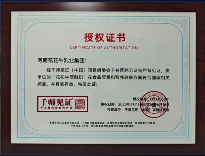 2025年7月2日上午,千師見證(中國)項目組委會項目總策劃、河南食育科學(xué)研究院院長馮梓恒一行蒞臨河南花花牛乳業(yè)集團股份有限公司進行交流考察活動,并舉行授牌儀式。河南花花牛乳業(yè)集團黨委委員、副總經(jīng)理王東升及相關(guān)部門負責(zé)人熱情歡迎。
